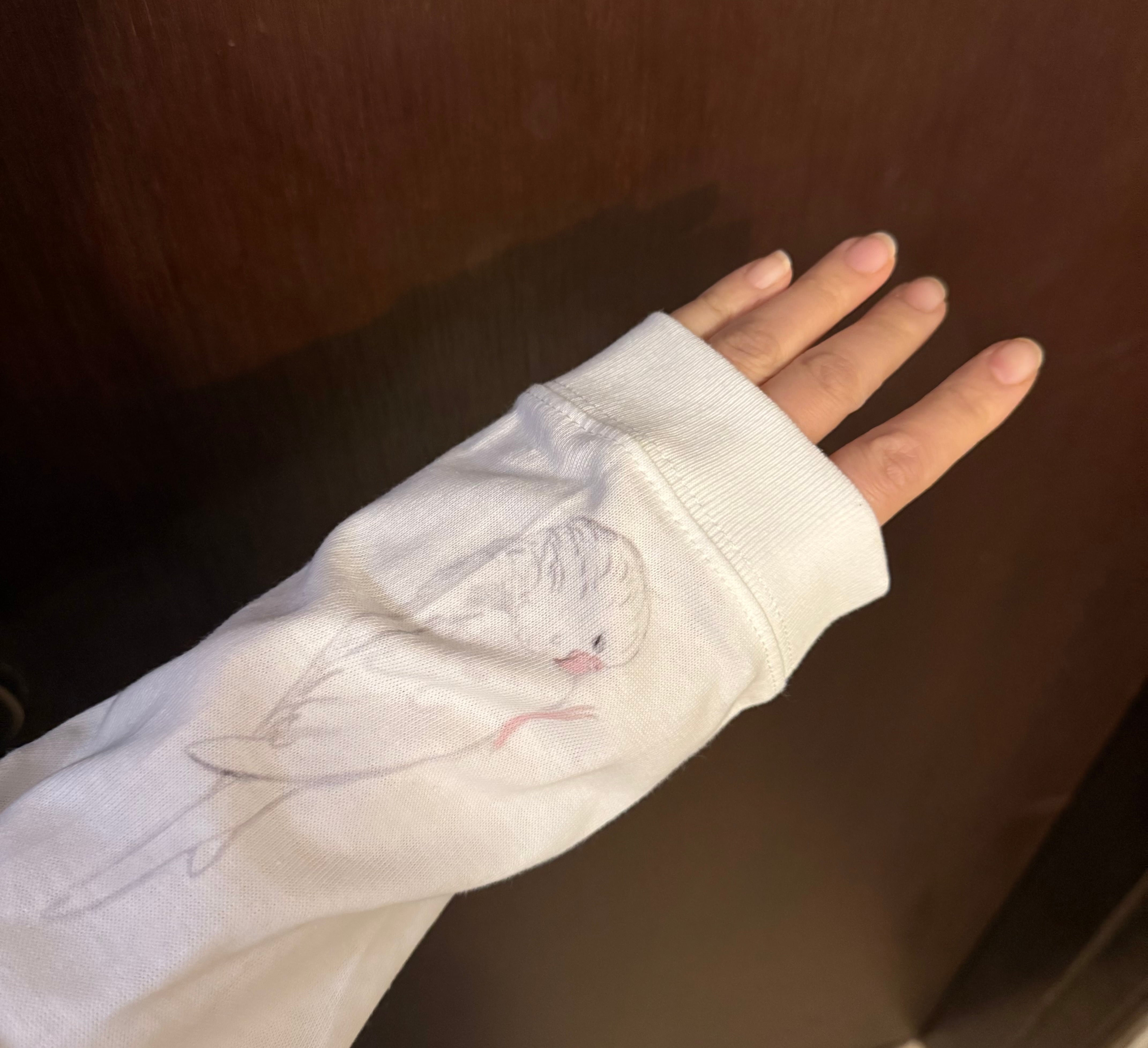 片方ずつ、セキセイインコが、もふもふ、ゴロゴロとそれぞれの袖にプリントされており、